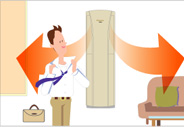 大金柜機(jī)采用左右環(huán)繞送回風(fēng)設(shè)計,通過兩側(cè)風(fēng)扇葉片的上下,左右調(diào)節(jié),將舒適的氣流環(huán)繞均勻的送至室內(nèi)各個角落,避免冷 (熱)風(fēng)直吹人體 。