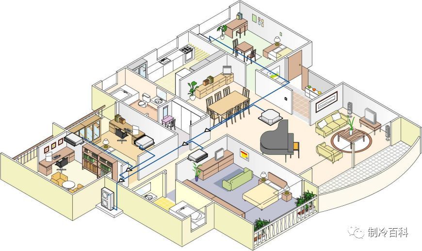 相對于其他類型的家用中央空調(diào),風(fēng)管系統(tǒng)中央空調(diào)雖然初投資小,引入新風(fēng)可有效改善室內(nèi)的空氣品質(zhì),但風(fēng)管系統(tǒng)的空氣輸配系統(tǒng)所需的建筑空間較大,一般要求住宅有較高的層高,同時(shí)它后期運(yùn)行噪音較大,運(yùn)行費(fèi)用高,因此針對家庭一般不推薦此類系統(tǒng)。